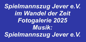 Liebe Besucher/innen dieser Seite,der Spielmannszug Jever wurde am 11. Nov. 1951 gegründet. Im Archiv schlummern viele Fotos, die in den nachfolgenden Fotofilmen zusammengefasst wurden.Alle Fotofilme sind mit der Musik des Spielmannszuges Jever unterlegt.Über alle Zeiträume liegen ebenfalls hochwertige Fotobücher vor.Bitte auf den jeweiligen Button klicken, um den Fotofilm zu starten.